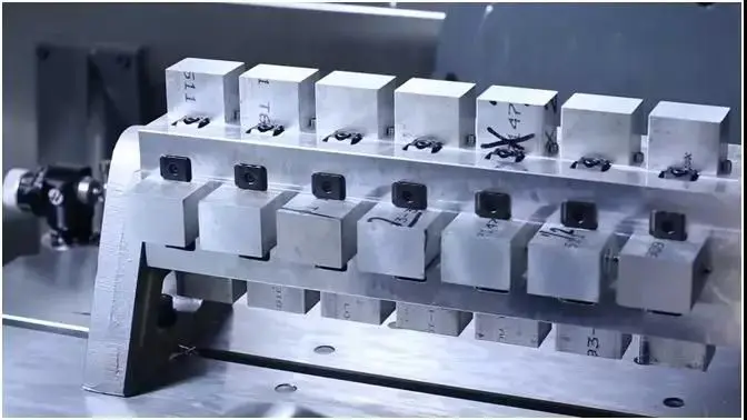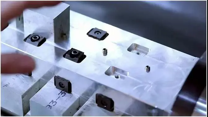 Daha sonra tabanın dört yüzeyi frezelenir ve her parça için bir konumlandırma pimi deliği, boş kilitleme tertibatını önlemek için iki yuva ve kilitleme için iki dişli delik işlenir; bunların hepsi üretim adımlarıdır.