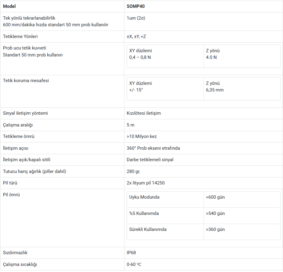 Silver CNC kızılötesi parça sıfırlama problarının öne çıkan özellikleri: