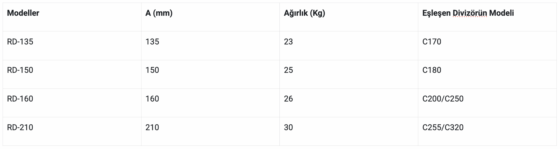 Lütfen dört eksenli divizörlerin (döner tablaların) merkez yüksekliğine uygun olması gerektiğini unutmayın.