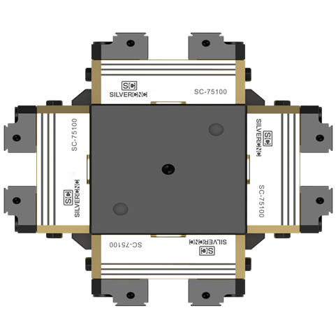 Bağlama kulesi üzerinde 8 adet SilverCNC SC-75100 merkezleyici mengene ve 4 adet çift istasyonlu SilverCNC SC-75150D merkezleyici mengene monte edilmiştir.